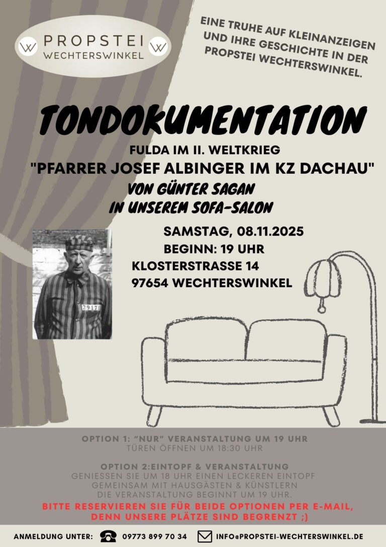 Samstag, 08. November 2025 – 19 Uhr Tondokumentation „Pfarrer Josef Albinger im KZ Dachau“ Infos & Inhalte EINE TRUHE AUF KLEINANZEIGEN MIT IHRER GESCHICHTE IN