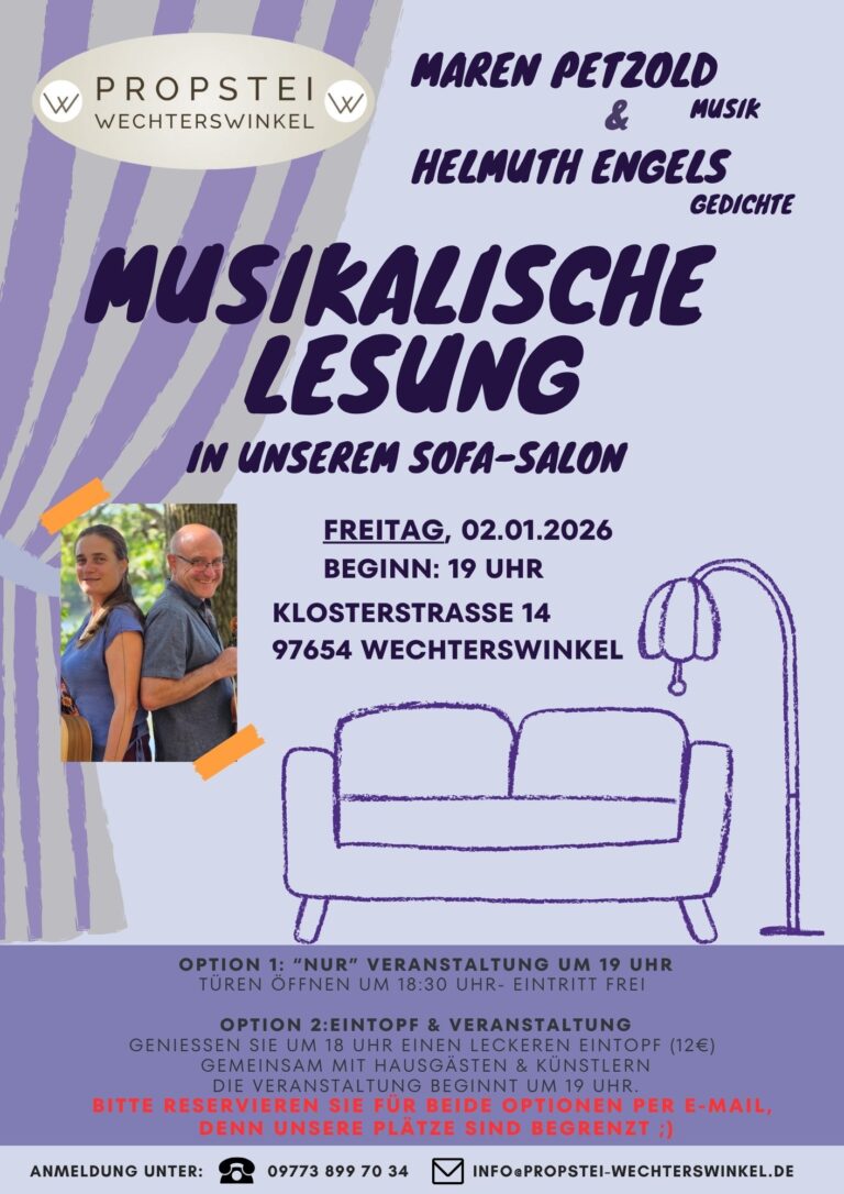 Freitag, 02. Januar 2026 – 19 Uhr Musikalische Lesung von und mit Maren Petzold & Hemuth Engels in unserem Sofa-Salon Infos & Inhalte Maren