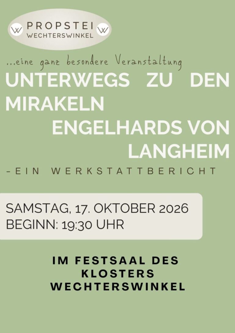 Samstag, 17. September 2026 – 19:30 Uhr Unterwegs zu den Mirakeln Engelhards von Langheim – ein Werkstattbericht im Festsaal des Klosters Wechterswinkel Infos & Inhalte