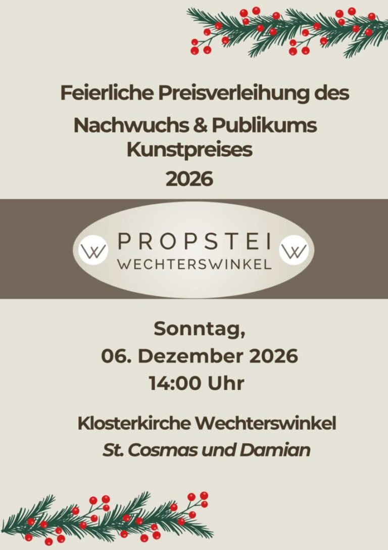 Samstag, 12. Dezember 2026 – 19:30 Uhr Feierliche Preisverleihung des 5. Nachwuchs-bildhauersymposiums in der Klosterkirche Wechterswinkel St. Cosmas und Damian Infos & Inhalte Eingebettet in